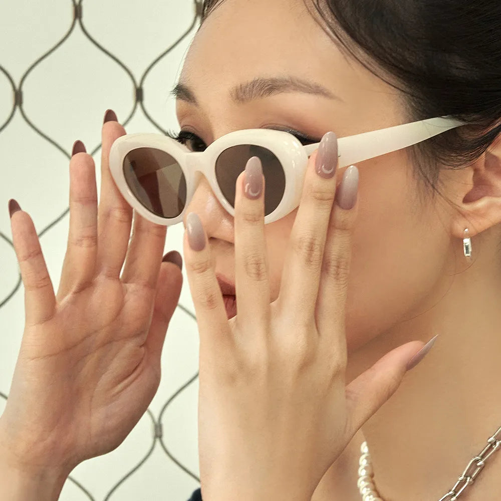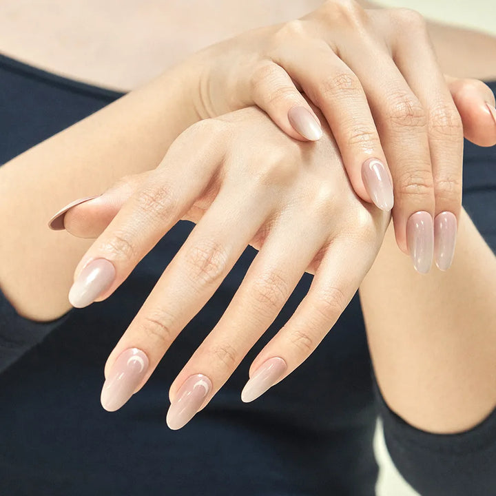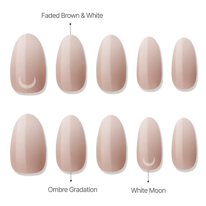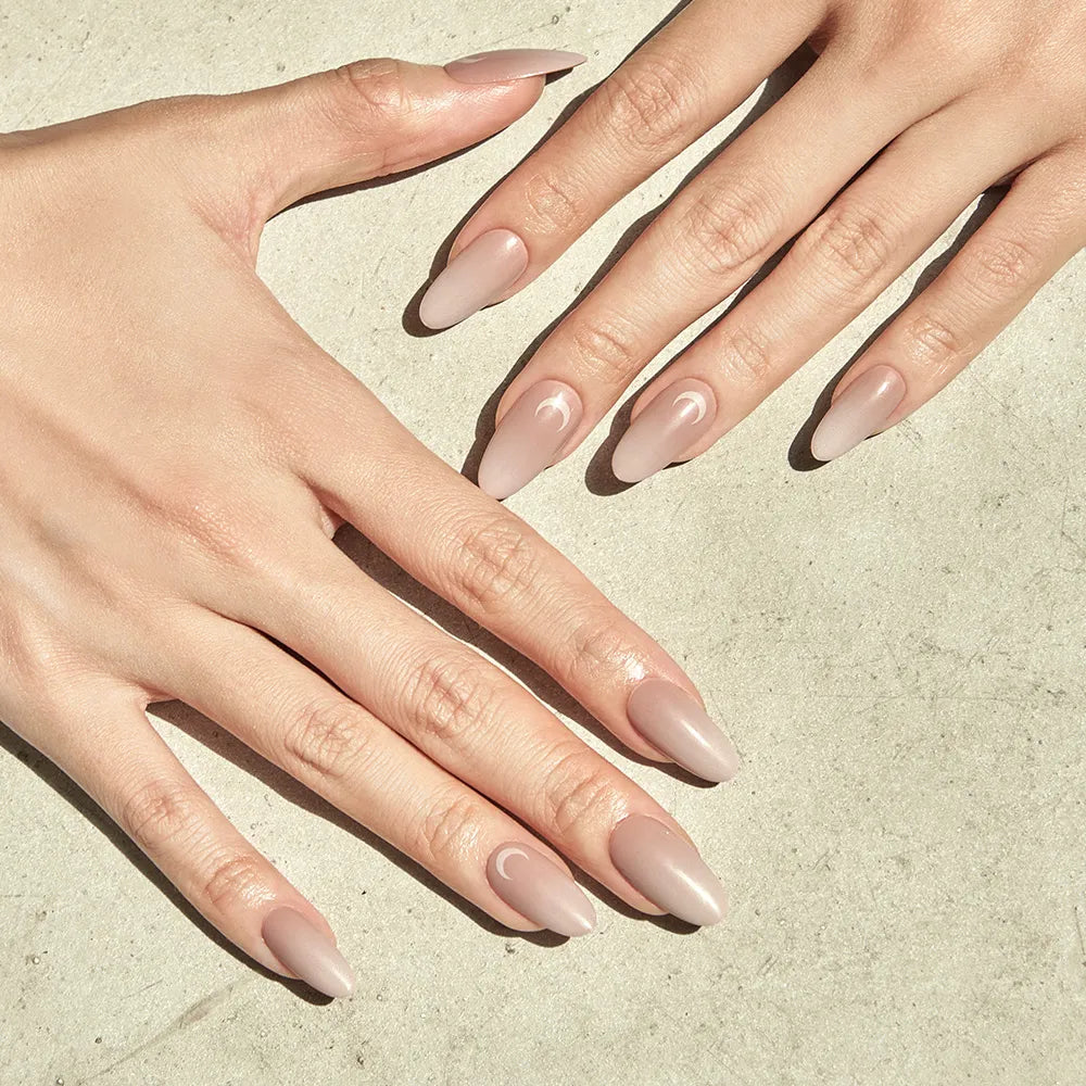 Amber nails with an attractive moon-shaped design on a soft gradient. This will be a stylish accent to your sophisticated look.