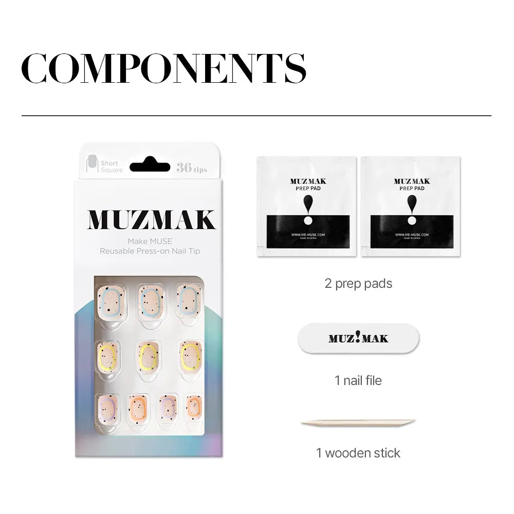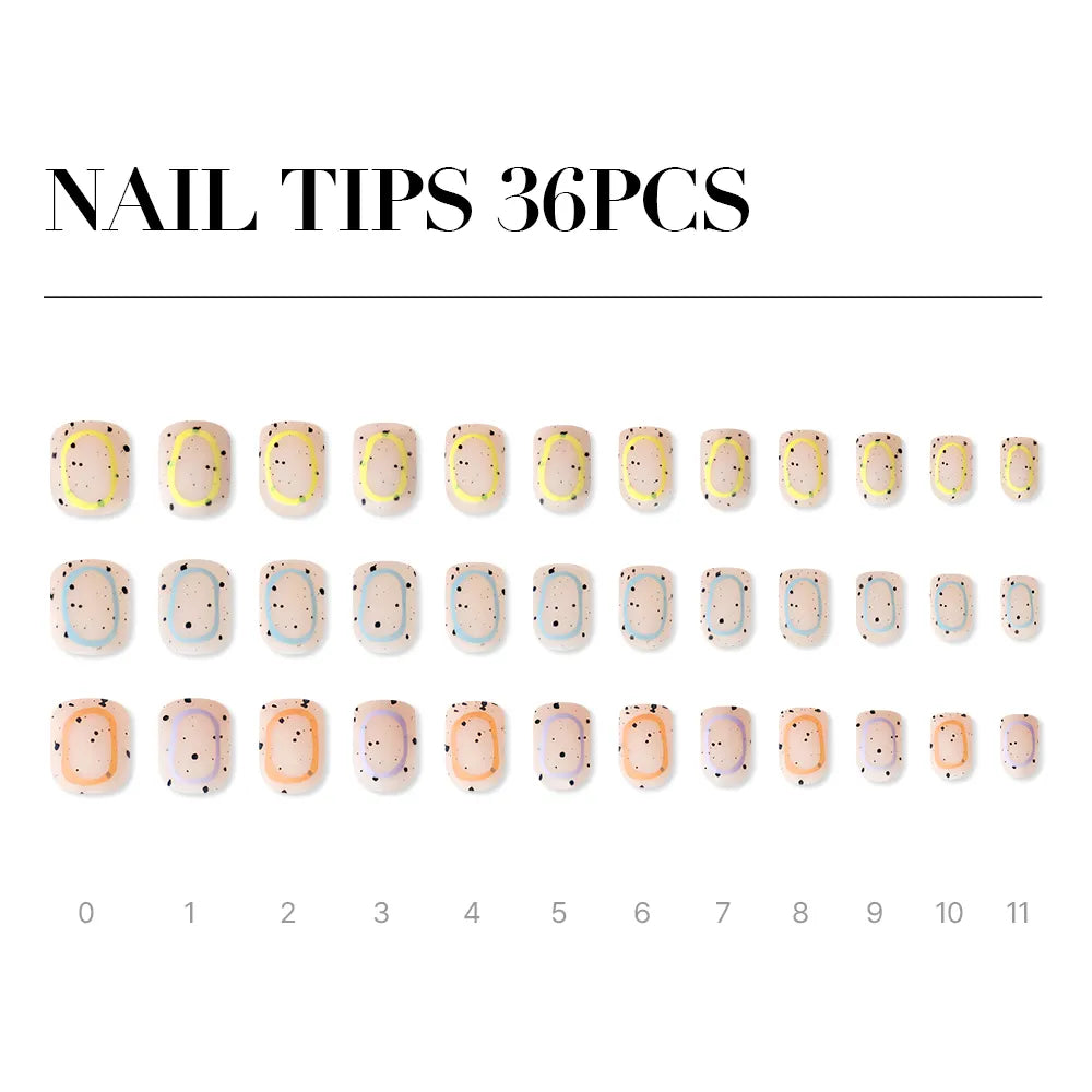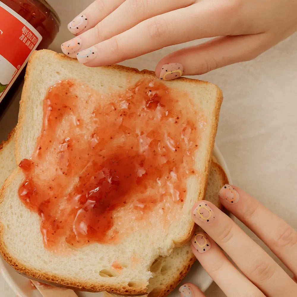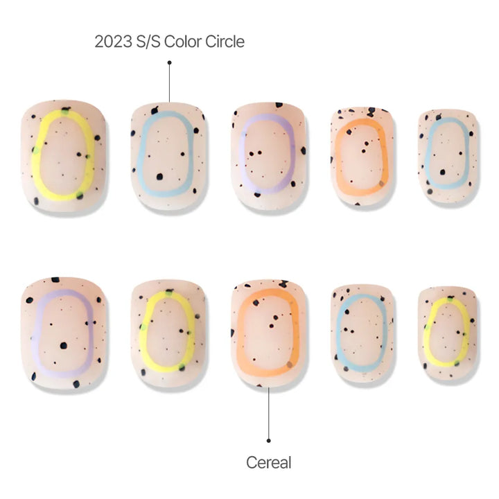 Cookie Ring, with a cereal base and various S/S colors sketched roughly with a pen. This creates a trendy and hip nail look.