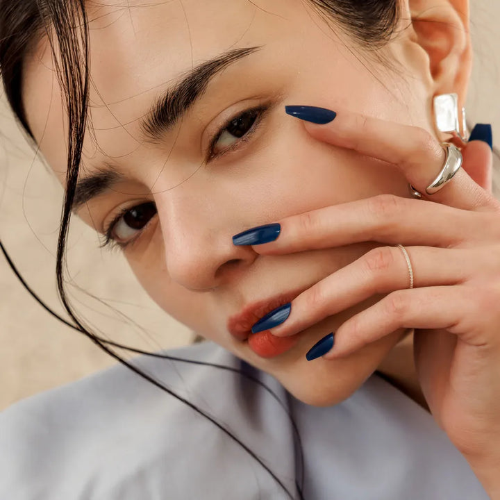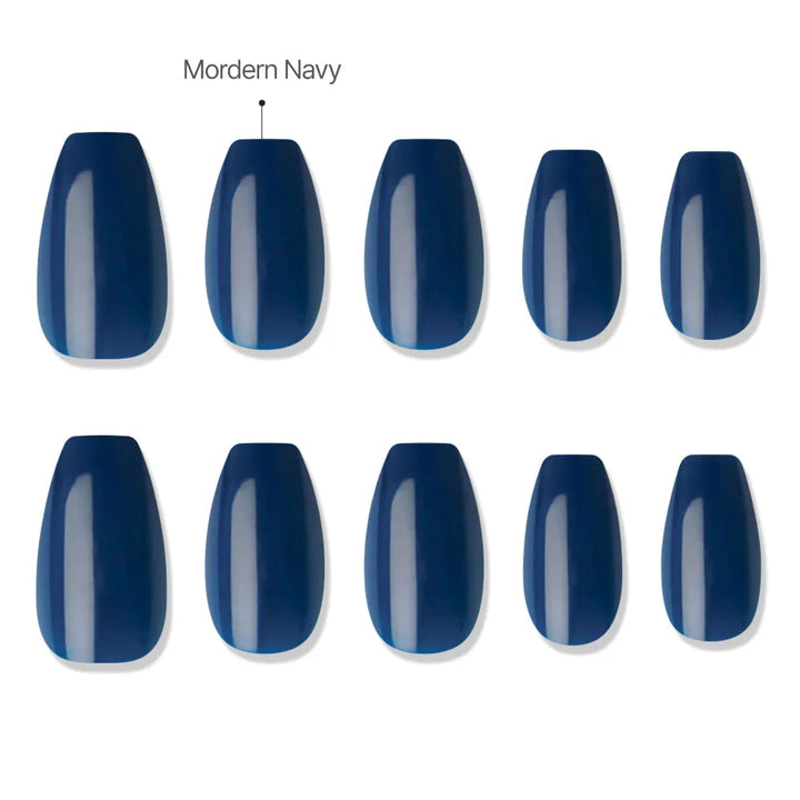 MUZMAK's custom-mixed navy color adds an edgy touch to a simple daily look.